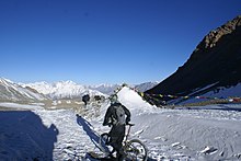 - Lekhs - Snow occasionally falls and lasts days or weeks in the winter above 3,000 m(10,000ft), but melts in summer below about 5,500 m (18,000 ft). Treeline is about 4,000 m (13,000 ft). This zone is used for summer pastures but not year-round habitation.
