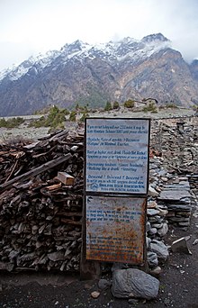 - North of the lekhs, the snowy high Himalayas rise abruptly along a fault zone to peaks over 6,700 m (22,000 ft) and even over 8,000 m (26,000 ft). Himalaya means 'abode of snow', which is uninhabited. Valleys among the peaks are inhabited, especially along trade routes where rice from the lowlands was traded for salt from the Tibetan Plateau along with other goods. Trade has diminished since China annexed Tibet in the 1950s but catering to trekkers and climbers has become an economic engine. People living along these routes have Tibetan affinities but usually speak fluent Nepali.