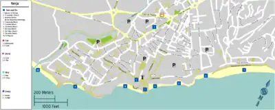 Nerja (pronounced like: N'air'-ha) is a seaside resort on the Costa del Sol, in the region of Andalucia of Spain. It is one of the few resort towns on Costa del Sol that isn't dominated by large ugly concrete hotels. It's in the attractive foothills of the Sierra Almijara mountains.