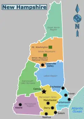 New Hampshire is a state in New England in the northeastern United States of America. Noted for its terse and independent inhabitants and cold winters, New Hampshire offers much natural beauty.