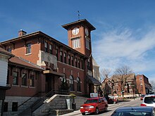 - π Kinark King George Aim (formerly King George School), 400 Park Ave (at Victoria St). This square, 2-storey brick building has entrances on both corner streets. Built 1912-1913, this was Newmarket's oldest functioning elementary public school. Today, the building serves as a condominium.