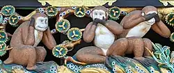 - After two flights of steps you will reach the Sacred Stable, housing a white horse. The most famous symbol here is the carving of the three wise monkeys (see infobox), a part of a curious series of carvings about the life cycle of a monkey, from giddy childhood to fearful old age. Nearby, you can also find an interesting approximation of an elephant, carved by an artist who had clearly never seen one.