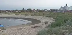 A small village with less than 1000 permanent residents, but one of the best beaches on the north coast with shallow water and a lifeguard service in season, makes it a very popular destination for day trippers and guests to the vacation homes which stretches 2km inland. The name means "Queens Mill", and dates back to the 16th century, but which mill this name refers to remains uncertain.