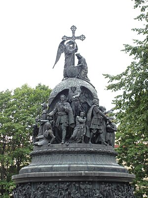• 🌍 Monument of the Millennium of Russia (in the Kremlin). This iron statue is in the park in the center of the Kremlin. It was created in 1862 and is ringed by an interesting panorama of famous individuals in Russian history up to that time. Russian Tsars and Patriarchs appear on one half of the panorama, and cultural figures on the other half.