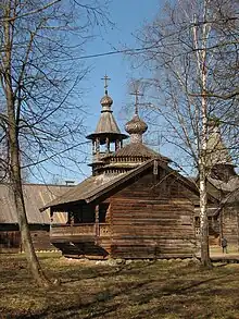 Some of the wooden buildings at the Vitoslavitsy Museum of Folk Wooden Architecture