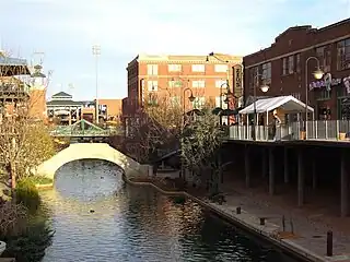 This is the business district of Oklahoma City. Many people work in this area during the day and then head out for an evening drink or meal.