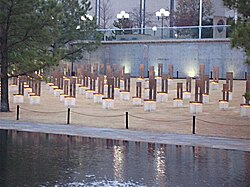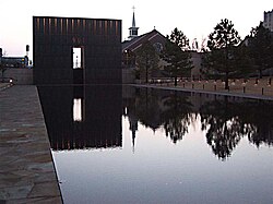 • 🌍 Oklahoma City National Memorial, 620 N Harvey Ave (between N. Harvey Ave and N. Robinson Ave at NW 5th St.), ☏ +1 405-235-3313. 24 hr. Park rangers on site 8:30AM- 5PM, daily. This is the memorial for the Oklahoma City bombing of the Alfred P. Murrah Federal Building that occurred at 9:02AM on April 19th, 1995. At each end of the memorial are the bronze 'Gates of Time'. At one end 9:01 for before and the other 9:03 for after. Between the gates is a reflecting pool and on the south side are the 168 memorial chairs, one for each person that perished and smaller chairs for the children. On the north side of the pool is the Survivor Tree, an American elm that survived the blast. At the west end along Harvey Ave. is the fence where visitors leave memorabilia. Outdoor memorial is free.