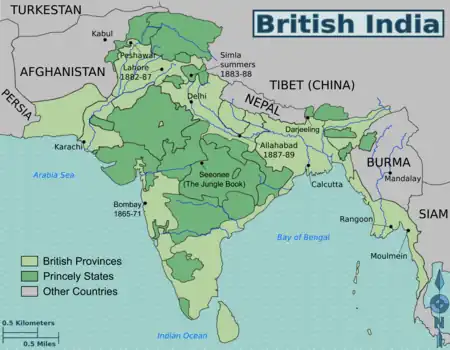 The British Raj was much larger than modern India; it included what are now Pakistan, Bangladesh, and Myanmar. Much of the tale revolves around the "Great Game", a phrase the novel made famous although Kipling did not invent it. This was a fierce competition between the British and Russian Empires for influence, particularly in Central Asia but also as far afield as Korea and the Caucasus.