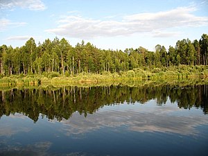 The area of the park covers about 360 km2 of forest and steppes, many streams cross the forests and there are few dozen lakes, many of them are located at the old peateries and amidst peat bogs.