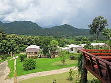 Set in a large picturesque valley north of Chiang Mai, Pai is tourism-oriented, offering a relaxed atmosphere with a vibrant tourist and backpacker scene. The town's permanent residents are a seemingly harmonious mix of common Thai folk, a significant minority of whom follow the Islamic religion, with an admixture of Western hippies, Thai Rastas and in the cool season, affluent Thais from Bangkok thrown in, which gives the place a unique vibe which may be appealing to some and off-putting to others. Pai is now sometimes referred to as the "Khao San Road of the North".