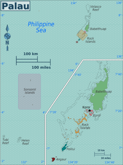 Palau (Belau) is a group of more than 300 tropical islands in the Micronesia area of the Pacific Ocean, to the southeast of the Philippines.