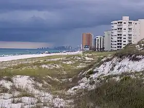 Well-known locations in the city were places such as "The Hang-Out" at the Long Beach Resort motel and the now closed Miracle Strip Amusement Park. There has been a construction boom and the cityscape is now characterized by high-rise hotels and condominiums.