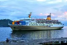 PELNI boats KM. Sinabung from Surabaya stop at Jayapura, Sorong, Manokwari and Biak. This is a relaxing and interesting way to arrive if you have the time. PELNI provides a 3-class service, consisting roughly of economy, second class, and first class. Economy class lodging and service provides for a 2.5 x 7ft bed arranged side by side with other beds and comes with minimal meals and sanitary facilities (public bathroom). The second class service consists of a 4-bed room with basic meal services and a small private bathroom. First class service is nearly identical to second class, except that the room features a 2-bed room and a window for a view outside.