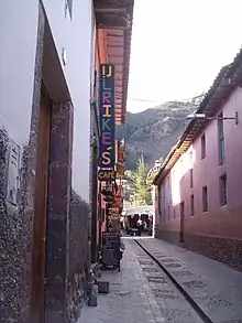 The town is located in the district of Pisac, province of Calca at the southern end of the Sacred Valley at an attitude of 2,972 m (9,751 ft), 32 km (20 miles) northeast of Cusco. The town straddles the Vilcanota River with most of the settlement on its right bank, where it is laid out in a grid pattern, centred around the Plaza Constitución (formerly the Plaza de Almas).