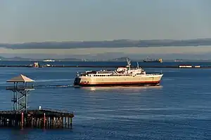 - 🌍 Black Ball Ferry Line (MV Coho), 101 E. Railroad Ave, ☏ +1 360-457-4491, toll-free: +1-888-993-3779. Is a passenger and vehicle ferry running between Port Angeles and Victoria, British Columbia across the Strait of Juan de Fuca. Crossing time is 90 minutes. Service runs all year except for an annual refit for one week in winter time. In the winter, this ferry runs 2 sailings a day and in the summer up to 4 sailings per day each way are scheduled. Fares are US$70.00 for car and driver and US$21.00 per passenger 12 years old and older, US$10.50 for children 5-11 years old, free for children 4 years old and younger.