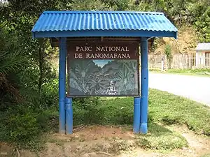 Ranomafana National Park is located close to RN7 in Fianarantsoa Province of Madagascar. It is holds 41,600 hectares (161 square miles) of rain forest that is home to several lemur species, is accessible by paved road, and contains a variety of lodging options, making it a popular destination for visitors to Madagascar. It's one of the six national parks that make up the UNESCO World Heritage Site Rainforests of the Atsinanana.