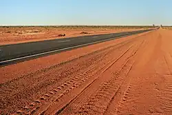 The paved Stuart Highway running from Alice Springs to Adelaide crosses the area and is the major artery for local traffic (meaning you can cross several vehicles per hour). The A4 Lasseter Highway is also paved, and links the Stuart Highway with Uluru.