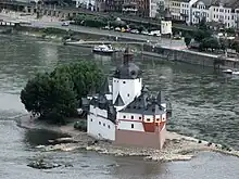 - Pfalzgrafenstein Castle (Burg Pfalzgrafenstein). 14th-century toll station in the middle of the river Rhine. Reachable by boat from Kaub