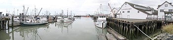 Steveston is in the southwest corner of Richmond where the Fraser River meets the Pacific Ocean. It used to be a fishing village and is now a tourist destination. There are good fish and chip shops in Steveston, and on sunny days you can sit out by the water on the boat docks and eat. Many movies and television series have been filmed here. A nearby park towards the western end of the village offers great views of the ocean and is a common area for barbecues in the summer. During the summer there is a popular farmers market.