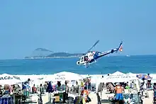 On weekends, beaches are watched by helicopters