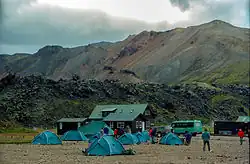 - The Landmannalaugar at the Fjallbak Nature Reserve is a geothermal hot spring and campsite, located in a mountainous section. Hiking or horse riding along many of its trails, which can take hours to days, take you to a breathtaking view of mountains with brownish smooth rocky slopes peppered with snow. Blahnukur is unique in that it also has bluish rocks. It is only open in summer and only 4x4 cars or select buses from Reykjavik are allowed to access this place.