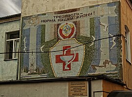 A Soviet-time mosaic on the wall of a hospital in Kaliningrad