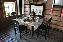 - Tea, (Чай chai), is an everyday beverage. Tea water is traditionally heated in a samovar (самовар).