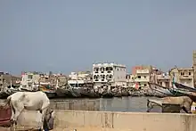 - 🌍 Guet N'Dar. Walk to Guet Ndar, the fishing village that is located on the Langue de Barberie and watch the fisherman bring in their catch. If you're lucky, you might get a great deal on seafood. Dozens of trucks wait to buy up the fish (for as little as 500 CFA a crate) and transport them into the interior as far as Kaolack, Tambacounda and Mali. Local people carry the fish in baskets on their neck and on their heads. Women can be found smoking and drying fish next to the beach in vast cauldrons. Nearby very colorful pirogues are always under construction. It is possible to see nearly every stage from the first carvings to the final painting. If you walk into the residential district of Guet Ndar, you will see thousands of people trying to live their lives squeezed in a tiny area. The scene is very colorful and lively, but when you walk along the beach you will see the effects of overcrowding in the squalid sanitary conditions and insufficient trash disposal. There is a decent-sized market in Guet Ndar, somewhat smaller than the larger Sor market two bridges away.