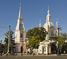 - 🌍 Cathedral of St. Andrew the First-Called (Андреевский собор — Собор святого апостола Андрея Первозванного), 6 line V.O. (6 линия В.О.), 11, ☏ +7 812 323-34-18. Perhaps the most beautiful religious building on the island, built in 1780. The main cupola is framed by three narrow towers, and is topped by a two-tiered belltower. The gilt, three-layered iconostasis inside is an impressive 17 meters tall.