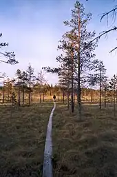 - Peuranpolku, part of the international E6 hiking trail, leads through the park. To get to the park from the north you can take a bus from Perho or 🌍 Kinnula and get off 3 km after respectively before the 🌍 Salamajärvi village (in the school year, weekdays only – and check whether you have to walk from the village). The trail, here also called Hirvaan kierros, crosses the road near the bus stop (🌍 Erijärvi). There is a parking area nearby. Walk 1.5 km by the trail (close to the Salamajärvi lake shore) to get to the park; 7 km to Sysilampi and 13 km from Erijärvi to Koirasalmi.