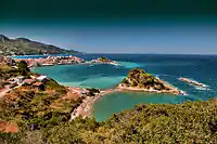 - 🌍 Kokkari (in the village of Kokkari, about 9.5 km west of Vathi). A pebble beach with deep clear waters. When northern winds blow high waves are created. It is well organized, with umbrellas and sun beds, beach volley, beach soccer, beach tennis, table tennis and equipment for water activities - water sports, such as windsurfing, canoeing, pedalo, scuba diving. There are many lodgings and small hotels as well as tavernas and bars by the sea.