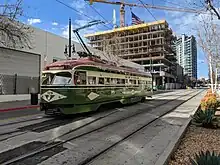 MTS doesn't have a trolley station at the airport. If you would like to catch the trolley from the airport. You will first need to catch the MTS Bus at the MTS Bus stop with route 992. A non-reduced fare will be $2.50 (Aug 2024), Once on the bus, Get off at the Broadway and Park Pl stop, and from there is a very short walk to the City College station. At the city college station you can catch a Orange line or UC San Diego Blue line train 7 days a week. Or on select days (check the MTS Website to see what days the silver line operates), the Silver line where you can catch a more vintage looking trolley, No matter which trolley you catch, a non-reduced fare will cost $2.50. If you would like to catch the green line you can board either the UC San Diego Blue, Green, or Silver line trolley, and get off at the 12th & Imperial stop, the only MTS Trolley station where all 4 trolley lines run.