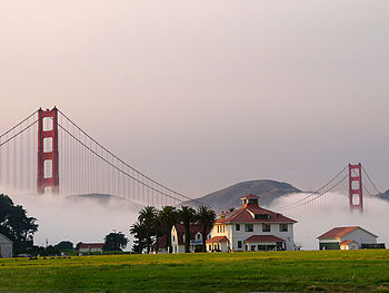 Golden Gate Fashionable neighborhoods, e.g., the Marina District, Cow Hollow, and Pacific Heights, with extensive views and historical landmarks — Fort Mason, The Presidio, and the iconic Golden Gate Bridge. |