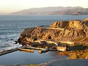 - π Sutro Baths (just below Cliff House). Wedged in a small beach inlet between the Cliff House and Point Lobos, these stone ruins were once a massive 19th century-era public bath house that held multiple swimming pools, which fell into disrepair before being destroyed by fire in 1966, leaving only the concrete foundations and a pool flooded with seawater. The crumbling ruins make for some fun exploration, with a long tunnel into the cliff that leads to a view of a cove. Mind your step: the trails that descend to the site are steep and the ruins themselves pose hazards if you're careless. Free.