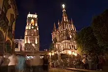 - 🌍 Parroquia San Miguel Arcángel, Plaza Principal s/n (by the Jardín), ☏ +52 415 152 4197. Daily 08:00-20:00. The marvelous pink granite parish church, looking like an ornate candy sculpture. The building itself dates from the 16th century, while the façade was designed in the 19th century by self-taught indigenous architect Zeferino Gutíerrez, who is said to have been inspired by a postcard depicting a European Gothic cathedral.