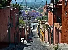 Maybe 90% of San Miguel's attractions are within walking distance. Just keep in mind that because San Miguel was built into the side of a mountain, it can turn out to be difficult to traverse, some inclines are 15 or 20 degrees. Furthermore, the streets are cobbled and narrow – some were nothing but goat tracks before they were paved – and many have fallen into disrepair. Curbs are often a high step away from the road. All in all, the town can be unforgiving to an inexperienced walker. For this reason, it is advisable to bring comfortable shoes.