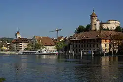 Schaffhausen is a city in north-eastern Switzerland on the river Rhine, next to the German border. Its prime tourist attraction are the Rhine Falls, Europe's largest waterfalls.