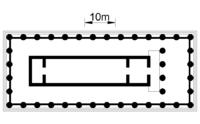 - π Temple D. This temple with an area of 56 x 24 m (6 x 13 columns) is located further north.