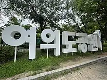 - 🌍 Yeouido Park, 120, Yeouigongwon-ro, Yeongdeungpo-gu / 영등포구 여의공원로 120 (여의도동) (10 min walk from Yeouido Station (Line 5, 9. exit 3)). Enormous and hugely popular park. This site was an airfield until 1971, and was used as Seoul's main airport before Gimpo Airport. There is a traditional Korean forest, and in many other places you can enjoy concerts, cycling, or taking walks. Hundreds of trees and flowers offer you shade and an opportunity to relax. There are nice ponds and basketball courts. For a nominal fee, one can also rent bicycles or roller blades for use at the park.Entrance of Yeouido park