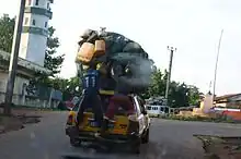 Poda-poda is the Sierra Leonean term for the West African bush taxi. Poda-podas are a lot less fun than your average bush taxi, though, reflecting the country's relative poverty compared to the rest of the region. The vehicles seem to be stitched together with thread, always nearly at the breaking point, six people for each row of three seats, blaring hip hop turning off and on with application of the accelerator, never sure whose sweat that is, never sure whether it will make it up the next hill. They are really cheap, though. Intercity trips often cost Le1,500-2,500 (in 2017, less than US$0.50), and any trip within Freetown just Le1,000. Shared taxis are marginally more comfortable, but still packed to the gills, and usually about the same price.