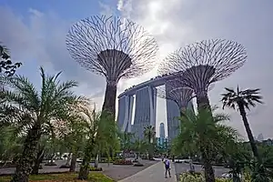 - π Gardens by the Bay, 18 Marina Gardens Dr (Gardens by the Bay MRT), β +65 6420 6848. The free outdoor gardens are themed around plants important to Singapore history and culture. Super trees tower over the rest of the gardens, built to mimic real-life trees using technology such as solar cells. The gardens also have a few event venues like the Meadow. Come for the surprisingly charming light show at the super trees, daily 7:45PM and 8:45PM. Free.