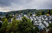 South Westphalia (German: Südwestfalen) is a region in North Rhine-Westphalia, Germany. It consists of Sauerland, Siegerland and some smaller sub-regions and is the most sparsely populated region of the state. The landscape is characterised by rolling hills and (low) mountain ranges, making Sauerland and the Rothaar Mountains one of Germany's northernmost skiing areas. Beyond winter sports, the region is popular for hiking, camping and its small and romantic historical towns.