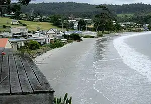 - 🌍 Roaring Beach, Roaring Beach Road. A pristine bayside beach about a kilometre east of town, and a favourable bird-nesting location. Dogs not permitted on beach.