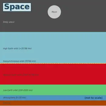 Low Earth orbit Between 100 km (62 mi) (Kármán line) and 2,000 km (1,200 mi), this is the most popular destination of all spaceflight, sub-orbital or on the International Space Station. The region presents the least risk and is the easiest to go to. |