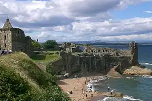 - ๐ Castle Sands is a small sandy beach just below the castle. You need high tide to access the sea, at other times there's a long furrowed line of rocks, fine for rock-pooling but a barrier to paddling. This beach is the site of the annual May Dip, where students jump into the sea at daybreak on 1st May as part of a hoary university tradition.