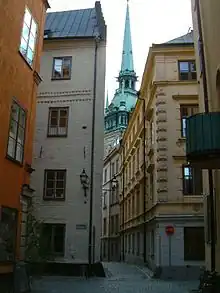 The Old Town; a collection of islands dominated by the Royal Palace and the Swedish Parliament. The main island Stadsholmen has a picturesque collection of old buildings and narrow cobblestone streets. The adjacent island, Riddarholmen has an important church and several historic government buildings.