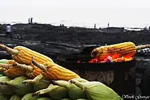 - Humita – paste made from fresh grated maize corns, boiled wrapped in corn husks, and turned into a dumpling. It can be combined with lard and salt and fresh cheese for a savory dish or with sugar, cinnamon and raisins for a sweet dish. Savory humitas may also be prepared with anise.