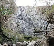 - Los Tercios waterfall (on the road south towards San Martín, turn left at the gas station, following the signs for Los Tercios; after about 2 km, there is a small sign and parking space on the left; a short trail leaves from there; go straight for a viewpoint for the lake; keep right to climb down some rocks to the waterfall). A waterfall made of a formation of hexagonal rocks. Even during the rainy season, the waterfall is usually dry; the hexagonal rocks are fascinating nevertheless. The tourism office recommends to visit Los Tercios only accompanied by tourism police who might join you there in the afternoon. The road to Los Tercios is relatively busy and there are also often tourists at the waterfall. $1 for foreigners and Salvadorans (updated May 2023).