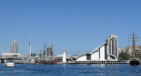 During the day, the area attracts visitors, city workers, and exhibition and convention attendees, getting busy on summer weekends and school holidays. On weeknights it has a particular vibe, with popular restaurants by the water, and people just out strolling around. On Friday and Saturday nights, the place is populated by club goers and can be quite crowded.