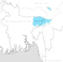 Sylheti (Sylheti: ছিলটী/ꠍꠤꠟꠐꠤ Silôṭi; Bengali: সিলেটী Sileṭī) is the language of Sylhet (the Surma Valley), located in the north-eastern region of Bangladesh, and also spoken in parts of the Northeast Indian states of Assam (the Barak Valley and the Hojai district) and Tripura (the North Tripura district). It is also spoken by a significant population in the other north-eastern states of India and some citizens in the United Kingdom, United States, and amongst the expatriate communities in South-east Asia (Malaysia, Singapore) and the Middle East.
